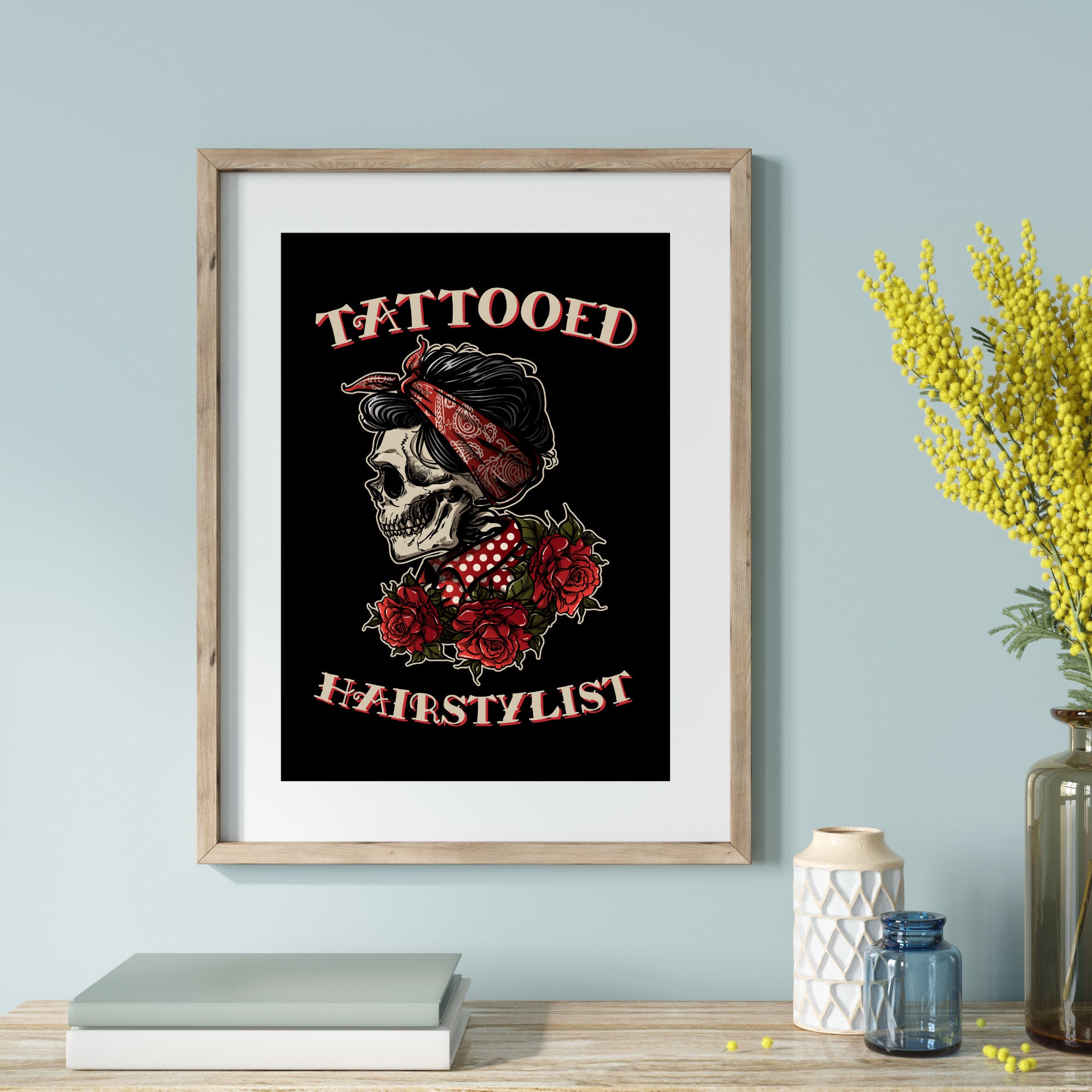 Tattooed Hairstylist Poster Hairstylist Wall Art Hair Salon Etsy